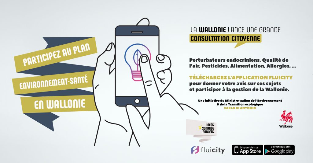 A citizens’ consultation on the theme of Environment-Health was launched in Wallonia on March 27 via the Fluicity platform. It enables Walloon citizens to express their views on key environmental and health issues such as endocrine disruptors, air quality, allergies and pesticides…