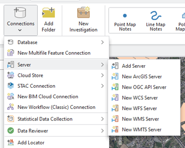 - Dans le groupe Connections, cliquer sur New ArcGIS Server.
