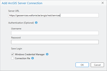 Ajouter un serveur REST du Géoportail de la Wallonie dans ArcGIS Pro